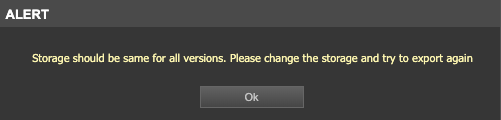 Error: "Storage should be same for all versions. Please change the storage and try to export again".