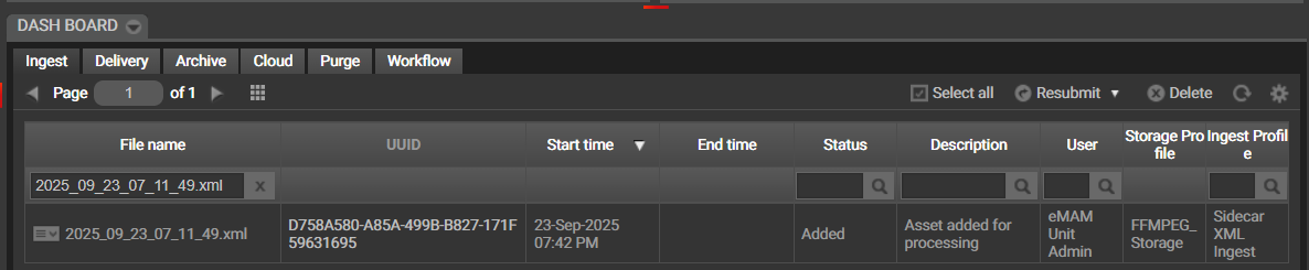 The system will process the XML for ingesting the files, and you can verify the same from the dashboard.