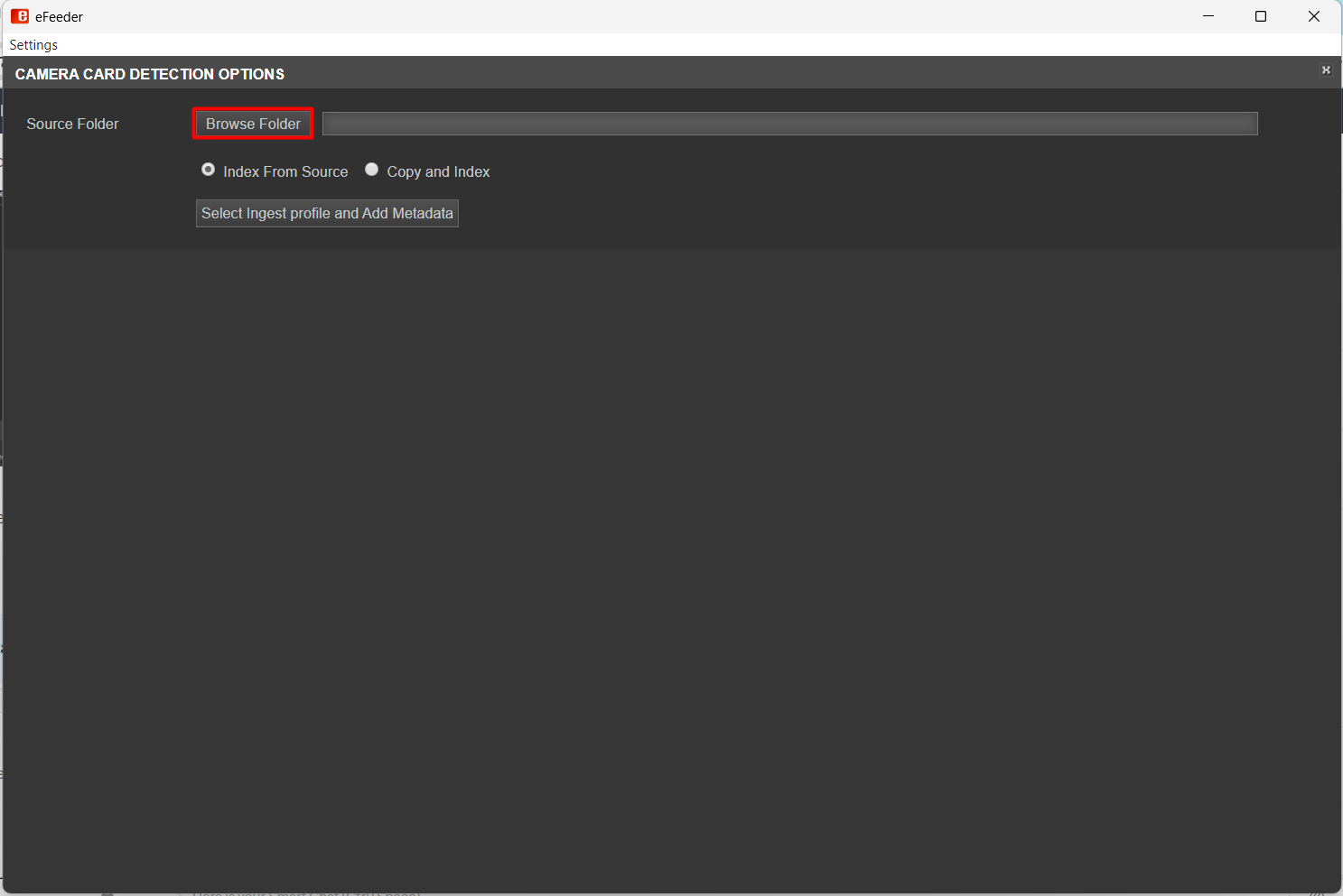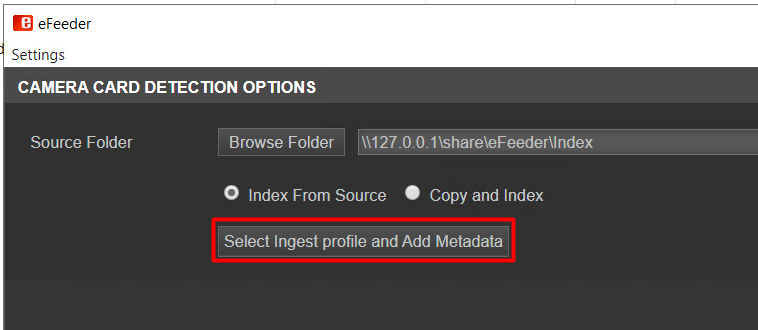 2: - If you choose Copy and Index, eFeeder will first copy the files to eMAM storage and then perform the indexing from there.