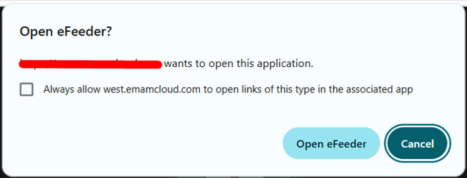 A pop-up window will appear. In this pop-up, you will have the option to open the eFeeder.