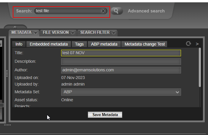 · Author –email id of the user who ingested the asset is the default value, but this field can be edited.